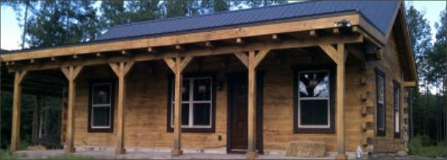 With 20’ x 35’ outside dimensions and an additional 8’ front porch this kit cabin has endless possibilities. Designed to be a 3 bedroom, 1 full bath with a 10’ x 10’ loft this kit is roomy enough for the family. The vaulted ceilings with exposed timbers, and Oak log walls give a spacious yet rustic feeling to this cabin. This kit cabin makes the perfect full time home, weekend get-a-away, lake house, guest house or warm and dry base camp for hunting season. The simple construction and size of this kit cabin make it a great project for even a novice builder.