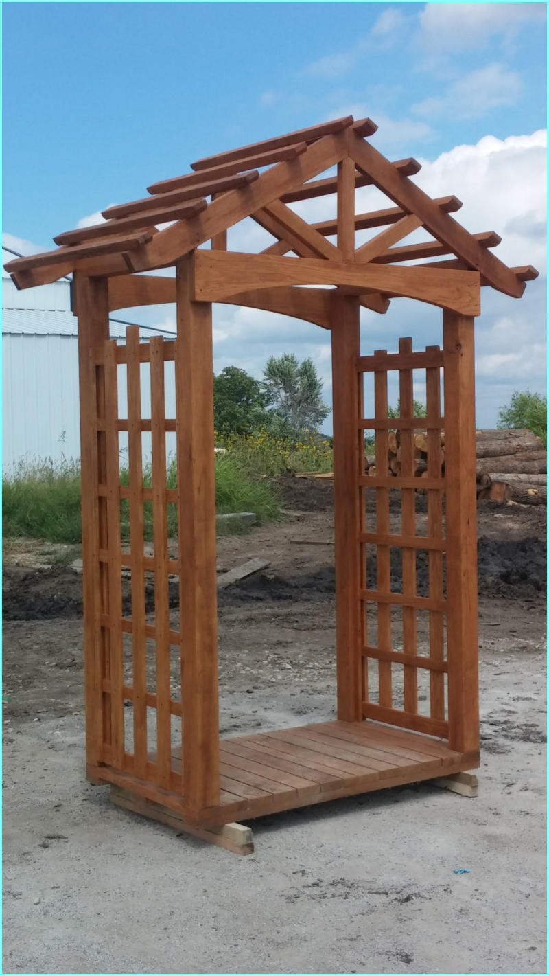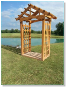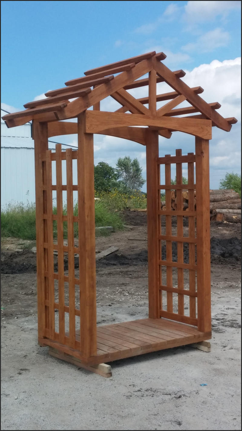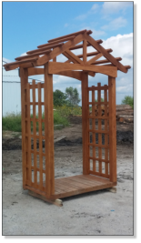 This Garden Arbor kit is 3’ x 6’ x 7’ which makes this arbor the perfect size to add to the garden or landscape. Built on a skid system this arbor is easily moved around the yard or garden.Our Garden Arbor make a great wedding accessory. What bride wouldn’t love saying her vows to the love of her life under this gorgeous Arbor.This Arbor kit is created from Oak and will be cherished part of the garden for generations.