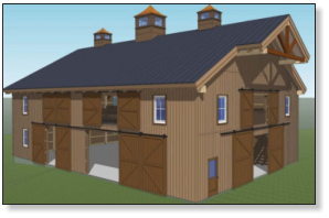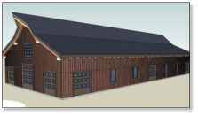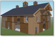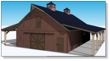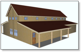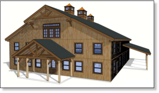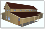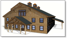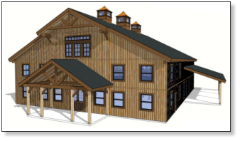 Schutt Log Homes and Mill Works sells Oak pole barn kits and Oak colonial style timber frame barn kits. These kits come in a variety of styles and sizes or custom kits are always an option.The board and batten siding on each of our kits gives the building a rustic charm which can not be achieved with metal siding. We strive to maintain that old school feel while adding a few modern touches.Any of our barn kits can be configured to suit your particular needs or we will be happy to assist you with designing a custom barn kit from floor to rooftop just for you.