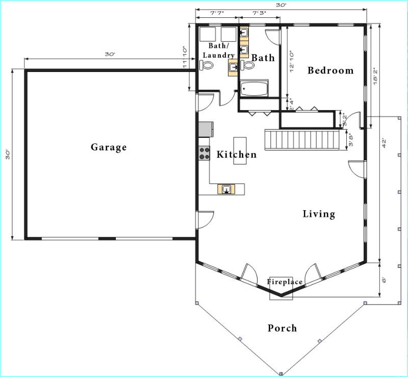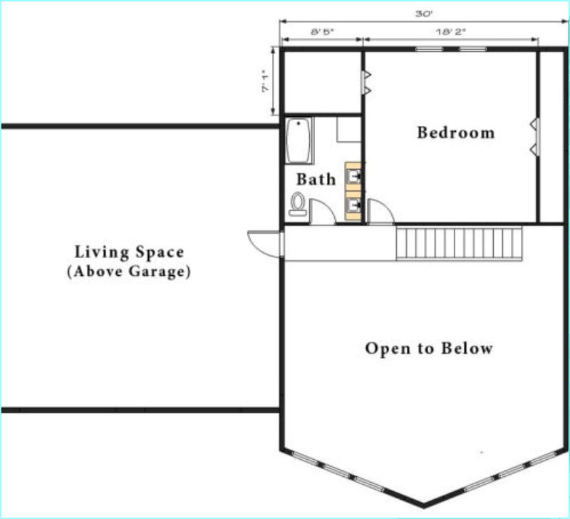 experience. The cabin features an attached 30’ x 30’ two-car garage with a 20’ x 30’ living area above,