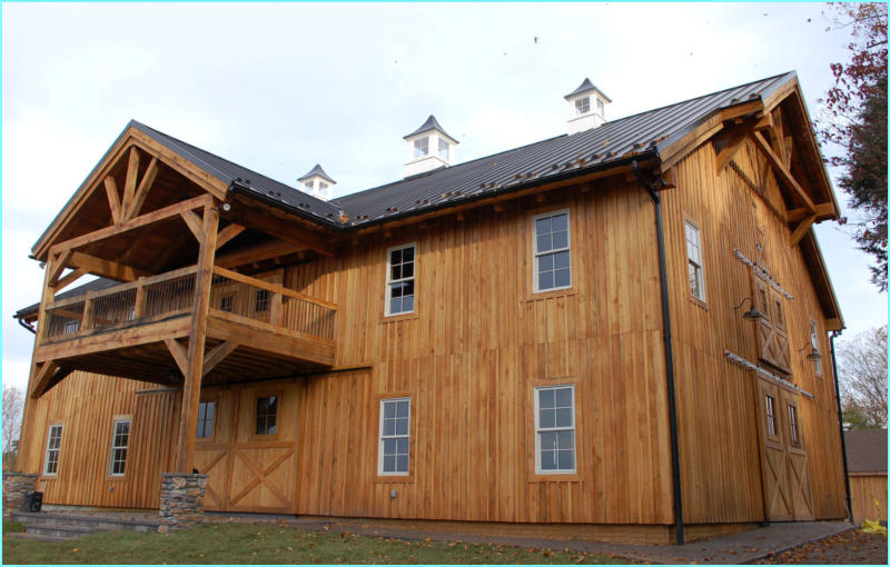 Oak Timber Frame barns stand out due to the large exposed timber posts and beams used in their construction. These barns are definitely eye catching. The large post make a definite statement that says "I'm here to stay!" The hardwood board and batten siding gives the timber frame barns a classic look and an old school feel. Our timber frame barn kits are custom built kits and can come in any variety of sizes, styles and designs. Please give us a call to get started designing your Timber frame barn kit.