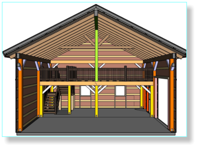 This is a basic list of material for a timber frame barn kit. This list may be adjusted for your specific project.  	Post and Beam Manual 	8” x 8” Post 	8” x 12” Headers 	8” x 12” Girders 	8” x 10” / 6” x 8” Collar Ties 	6” x 6” Sling Braces 	6” x 6” Wall Struts 	8” x 10” / 8” x 12” Ridge Beam 	4” x 8” / 6” x 10” Rafters 	2” x 6” Wall Girts 	4” x 12” Stair Stringer 	4” x 12” Stair Treads 	¾” x 5” Oak Window/Door Trim 	4” x 8” / 4” x 10” Floor Joist (2nd floor)   	8” x 8’ Porch Post 	8” x 10” Porch Headers 	4” x 8” Porch Rafters 	2” x 10” Fascia 	¾” x 5” Oak Ship lap Ceiling 	¾” x 8” Oak Boards 	¾” X 2” Battens 	2” x 6” Spindles 	6” x 6” Railing Post 	¾” x 3” Oak Trim 	¾” x 2” Oak Trim 	¾” x 5” Oak Trim What’s Included