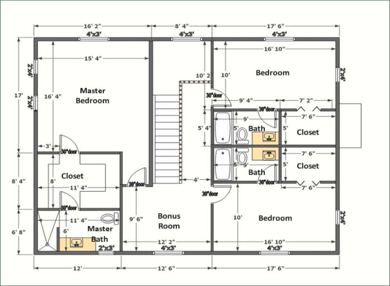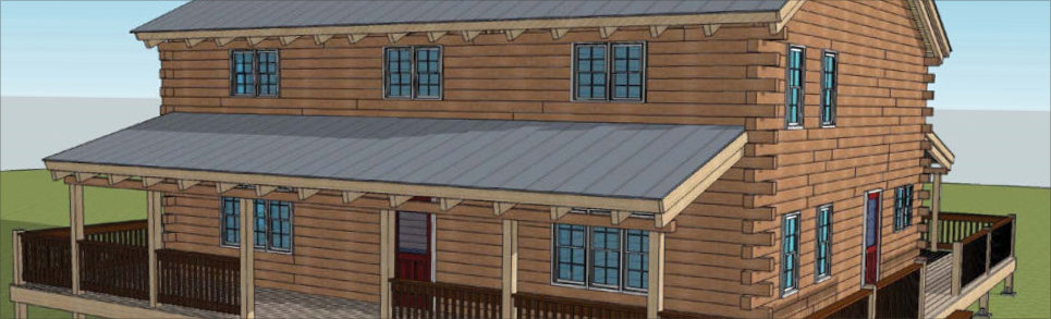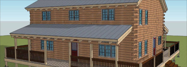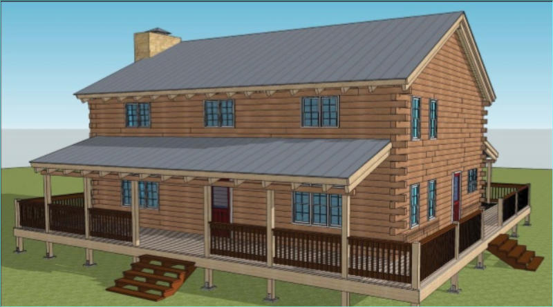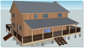 The Frontier Oak log cabin kit is a 2 story traditional style Home. This kit home has 3 bedrooms with large walk in closets, 3 and ½ baths, an office, a very large kitchen with room for the entire family to gather. The rooms of this kit are spacious but keep a warm comfortable feeling.The exterior of this kit features a wrap around deck with covered porches on the front and back .The frontier is 1344 square feet on the main floor for a total of 2500 square feet. The exterior dimensions of the frontier kit are 32’ x 42’ with 12’ covered porches on the front and 8’ covered porch on the rear.This kit can be built on a basement, crawl space or slab.