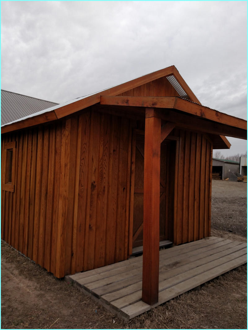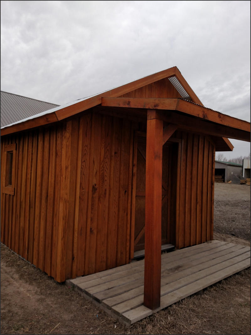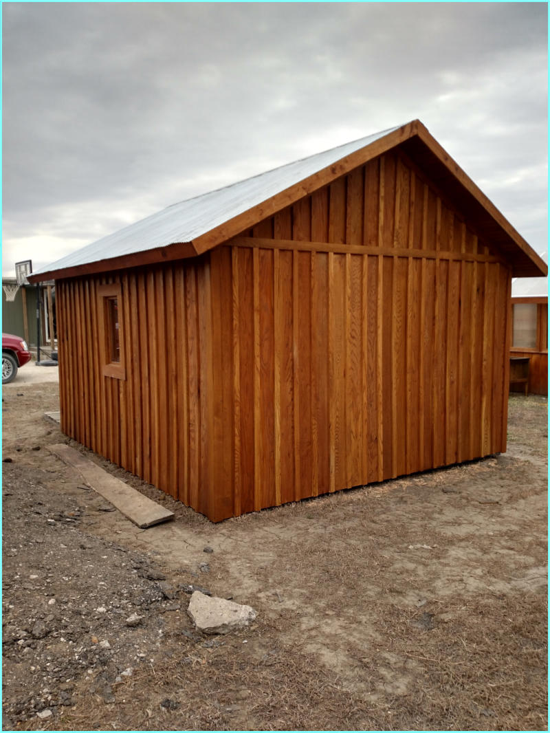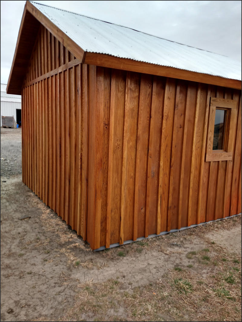 the yard. This building is made from Oak lumber and Oak siding so it is
