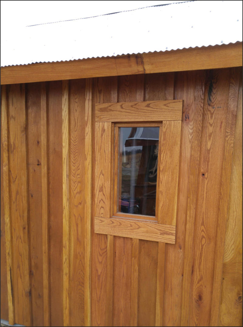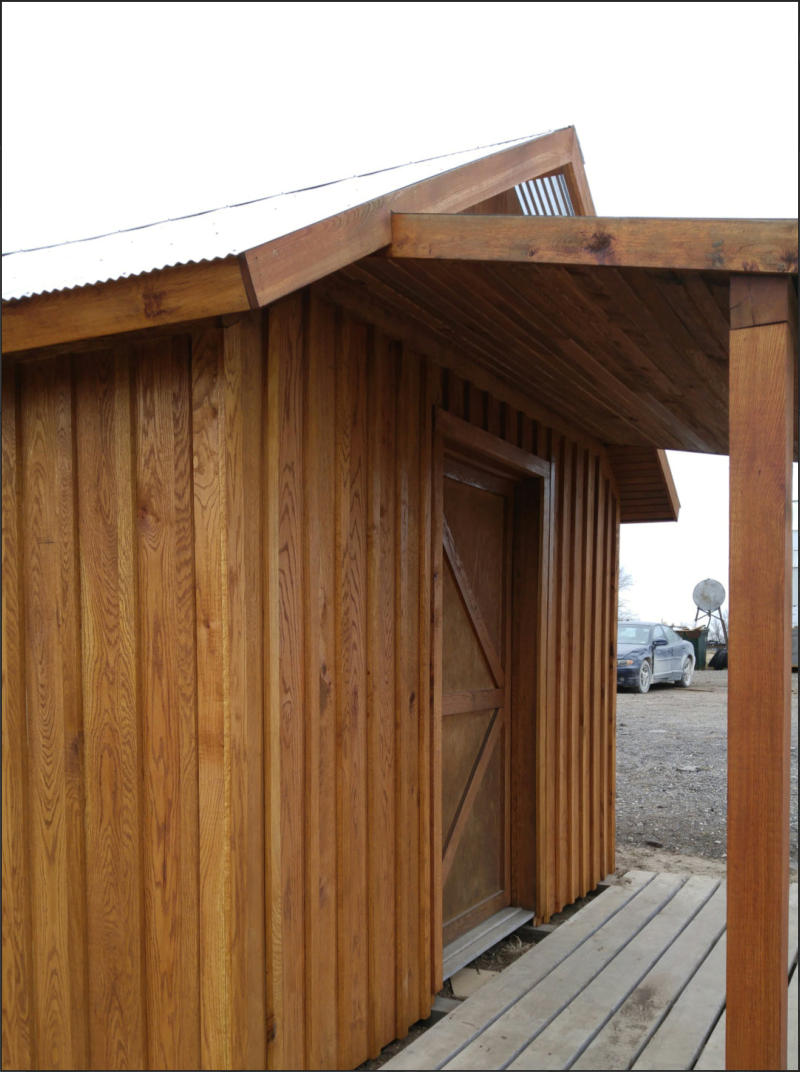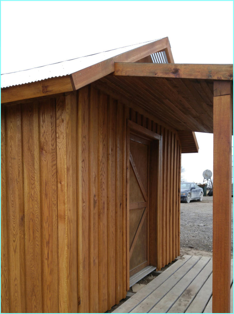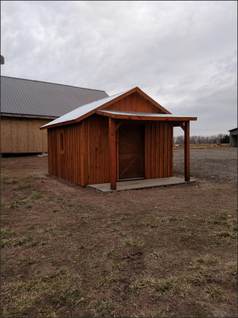 the yard. This building is made from Oak lumber and Oak siding so it is