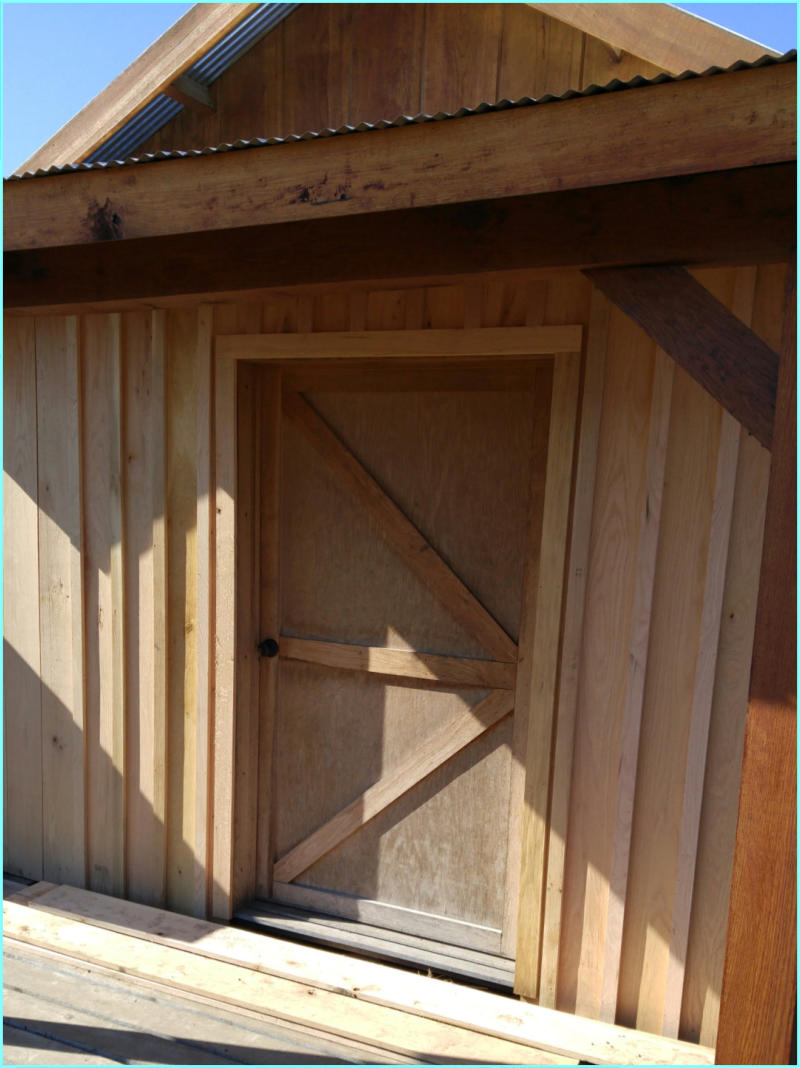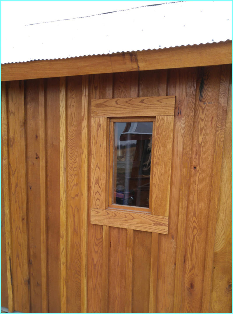 The 10’ x 14’ rustic garden shed is made from Oak posts, oak framing