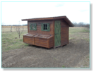 egg gathering. A full size walk through door helps to make cleaning a breeze. Built on a skid