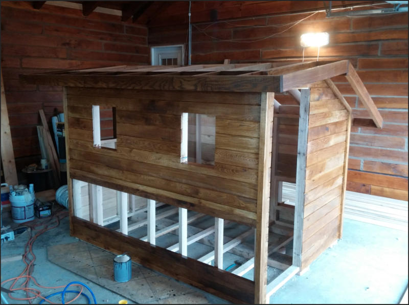 Plywood, hardware, roofing, wire, windows not included.