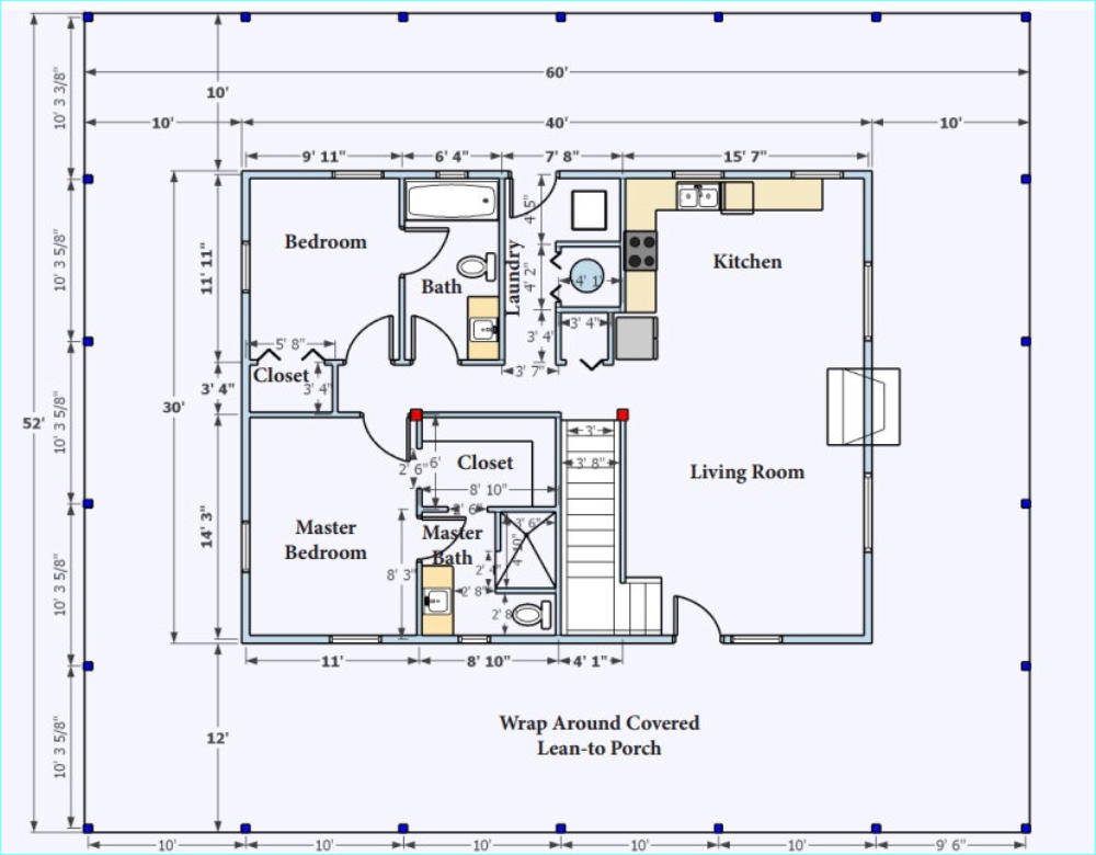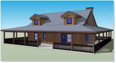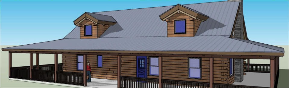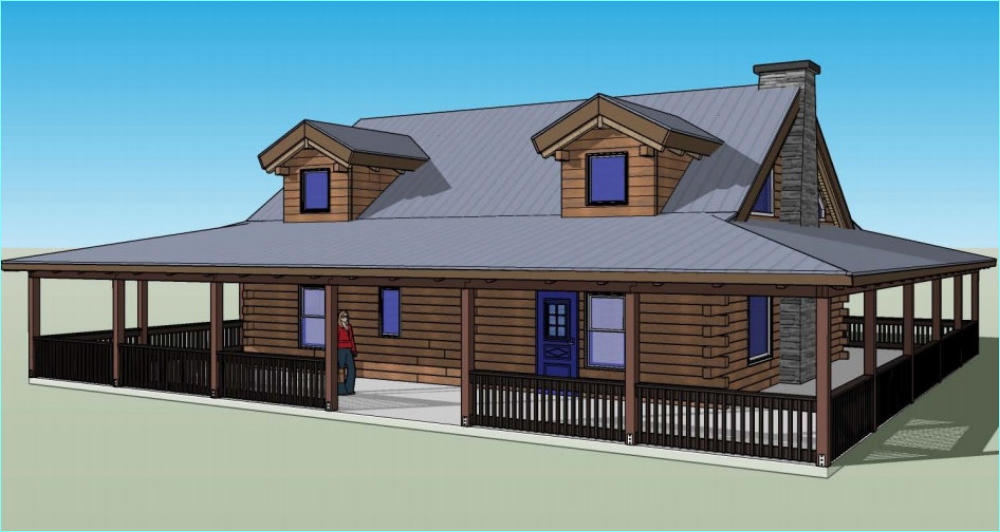 The Riverside Oak log cabin kit comes in 2 sizes. The 2100 square foot kit has a larger livingroom area. The rest of the cabins are the same.This kit cabin has 2 bedrooms and 2 full baths on the main floor and plenty of space for an additional bedroom upstairs. With a full 10’ wrap around porch there is always a place to sit in the shade .