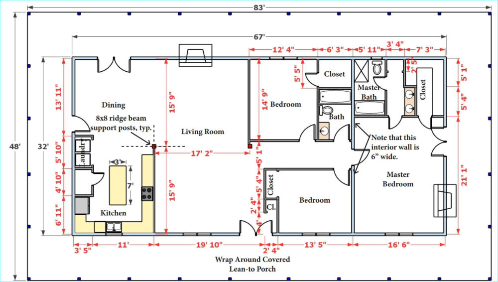 8” x 10” Porch Headers 4” x 8” Porch Rafters 2” x 10” Fascia Þ” x 5” Oak Shiplap Ceiling Þ” x 8” Oak Boards Þ” X 2” Battens 4” x 8” / 4” x 10” Floor Joist (2nd floor) Þ” x 3” Oak Trim Þ” x 2” Oak Trim Þ” x 5” Oak Trim2” x 6” Spindles2” x 6” Wall Framing