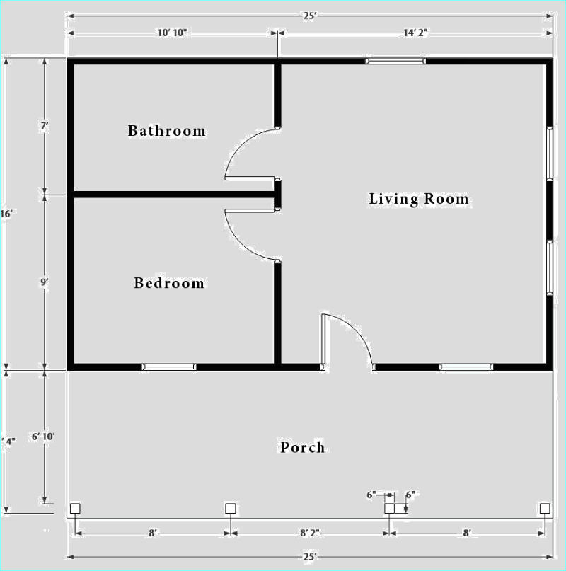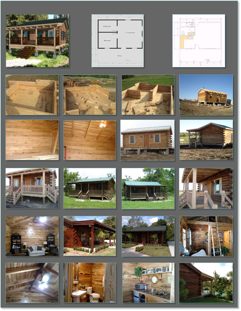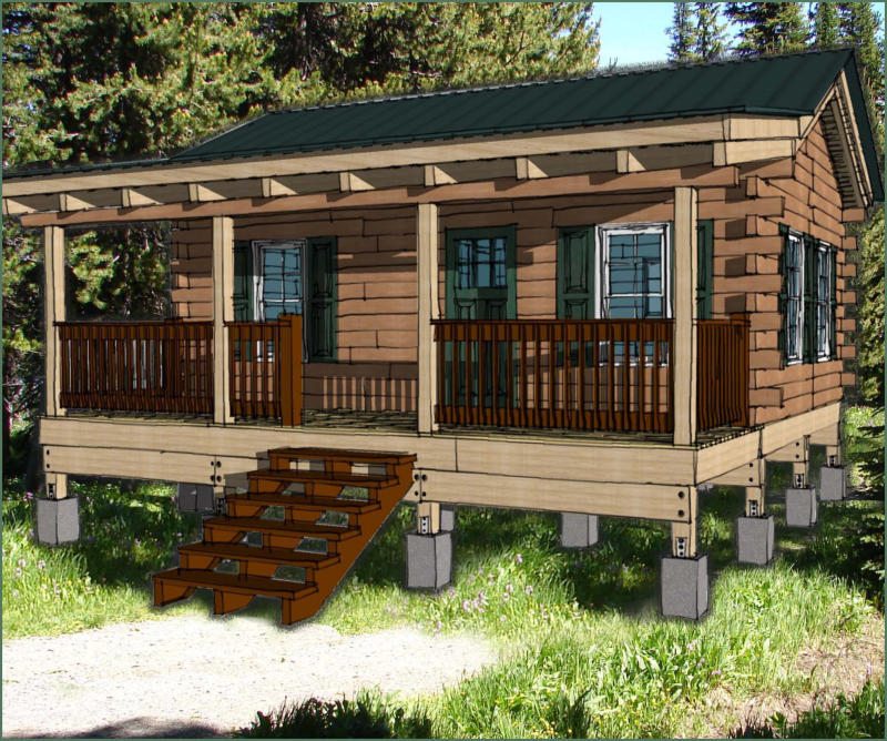 This cozy little bungalow has a 16’ x 25’ main structure with an 8’ covered front porch. The interior has 1 bedroom, 1 bath, and a 10’ x 10’ loft. The living area and Kitchen area are open and spacious to give a roomy feel. The loft area gives this home extra space for storage or an extra bedroom. The covered front porch adds to the homey feel and makes the home feel welcoming.The easy design of this cabin would make it a great project for a beginner or hobbyist who wants to try their hand at traditional log cabin construction.