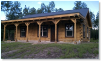With 20’ x 35’ outside dimensions and an additional 8’ front porch this kit cabin has endless possibilities. Designed to be a 3 bedroom, 1 full bath with a 10’ x 10’ loft this kit is roomy enough for the family. The vaulted ceilings with exposed timbers, and Oak log walls give a spacious yet rustic feeling to this cabin. This kit cabin makes the perfect full time home, weekend get-a-away, lake house, guest house or warm and dry base camp for hunting season. The simple construction and size of this kit cabin make it a great project for even a novice builder.