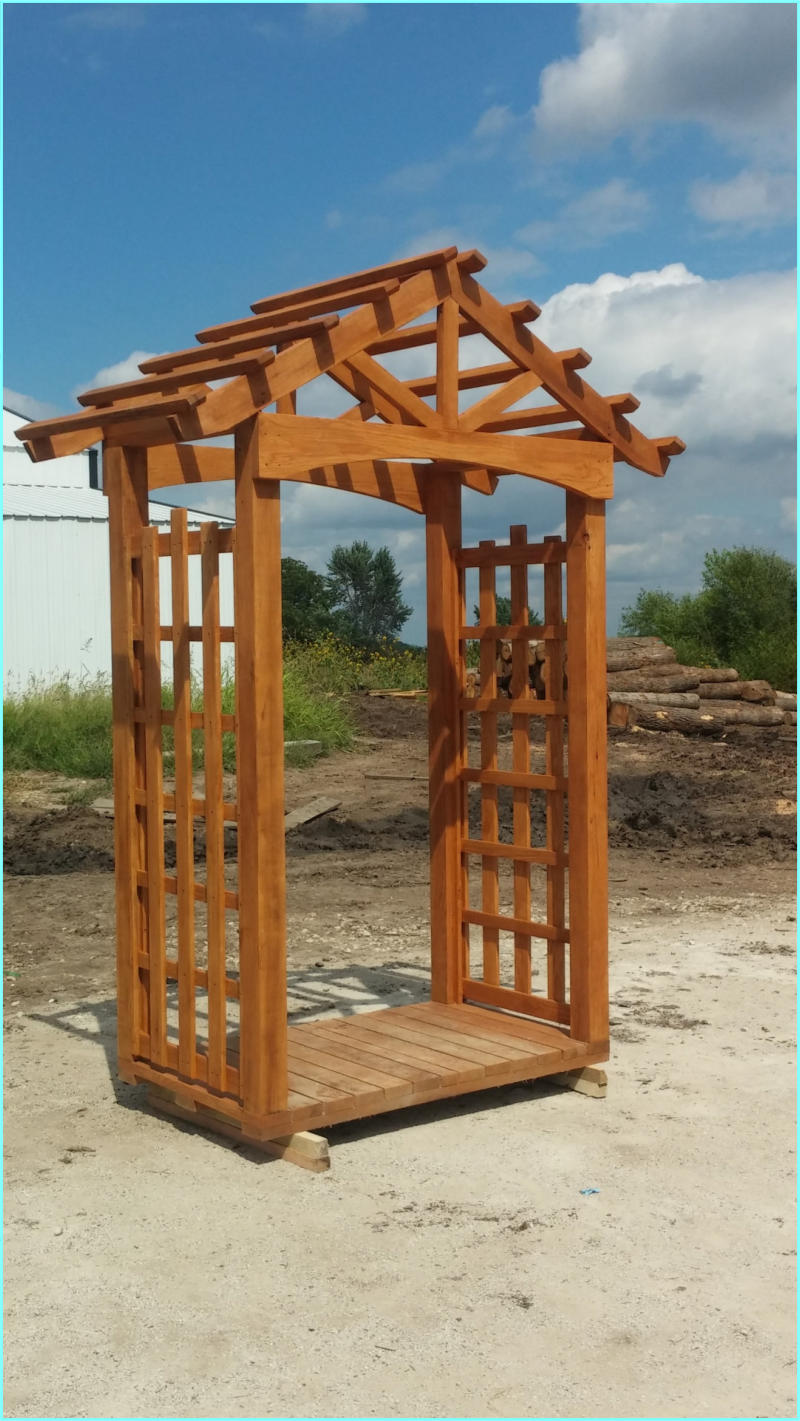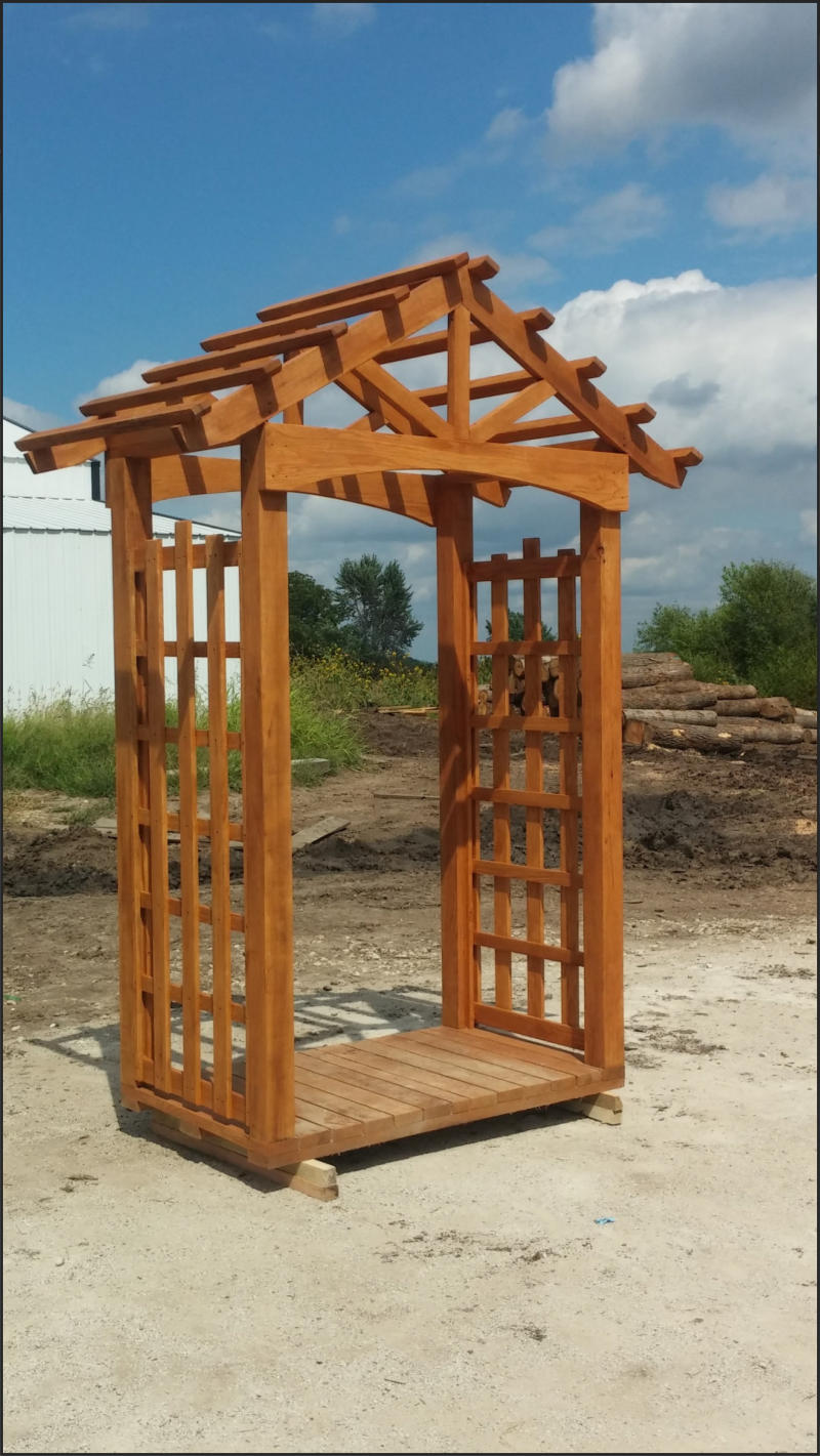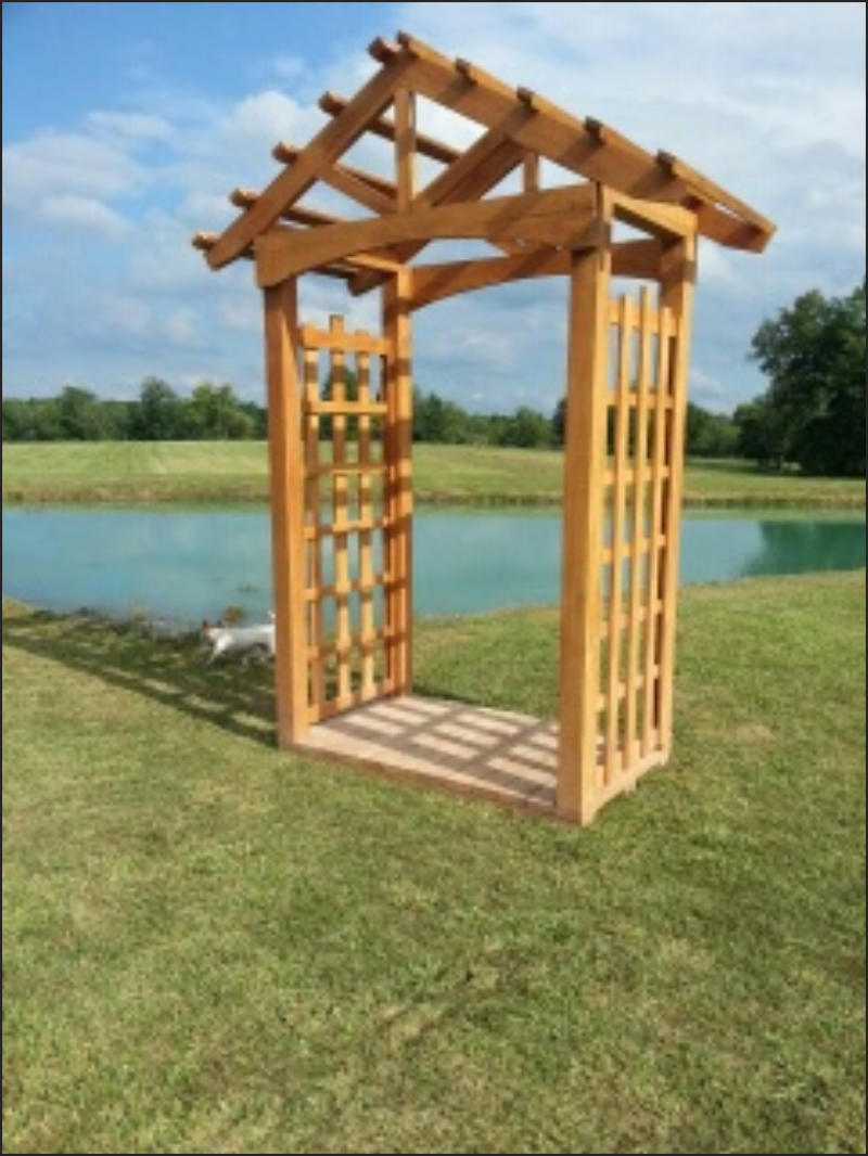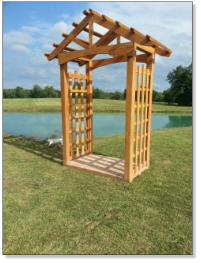 This Garden Arbor kit is 3’ x 6’ x 7’ which makes this arbor the perfect size to add to the garden or landscape. Built on a skid system this arbor is easily moved around the yard or garden.Our Garden Arbor make a great wedding accessory. What bride wouldn’t love saying her vows to the love of her life under this gorgeous Arbor.This Arbor kit is created from Oak and will be cherished part of the garden for generations.