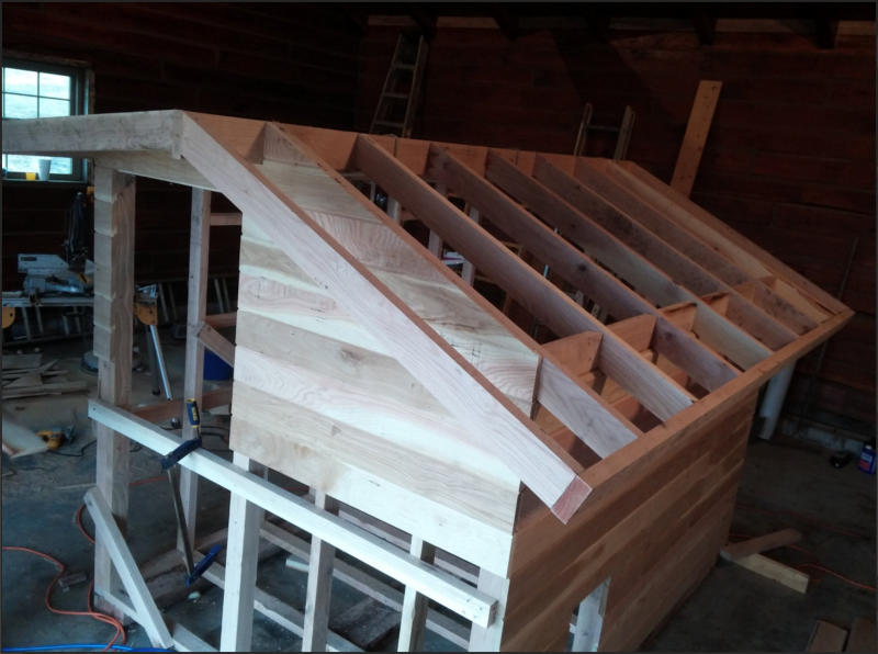Plywood, hardware, roofing, wire, windows not included.