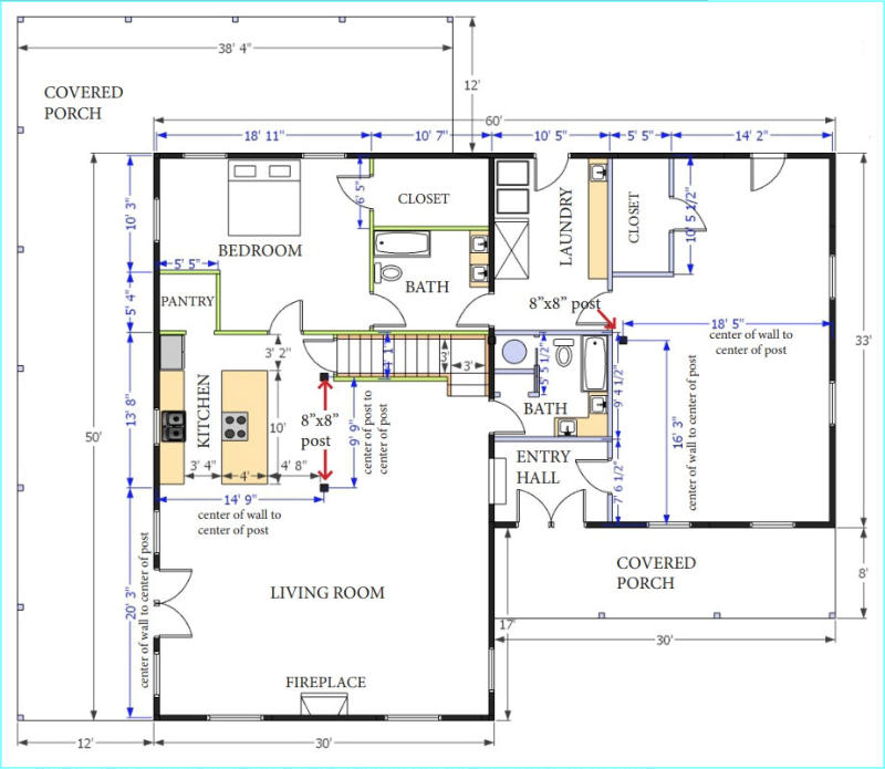This Homestead cabin kit features a 2490 square foot main floor and a fully functional 600 square foot loft. One highlight of this home is a large 20’ x 30’ living room and a spacious 13’8” x 15’ kitchen with a large pantry. The kitchen is open to the living room making a great place to entertain. This kit home has 2 large bedrooms and 2 full baths on the main floor and a 3rd bedroom and full bath in the loft.The 12’ covered porches on 2 sides are plenty of space for outdoor living. The 8’ covered front porch creates the perfect entry in to your dream home.This floor plan can be customized to exactly what you want it to be. We make any changes you would like in order to make this home your log home dreams.This kit can be build on a slab, basement or crawl space.