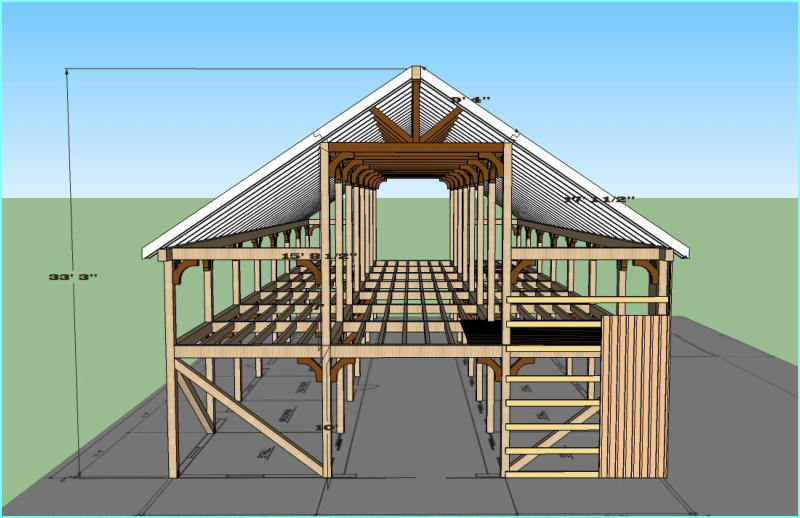 This is a basic list of material for a timber frame barn kit. This list may be adjusted for your specific project.  	Post and Beam Manual 	8” x 8” Post 	8” x 12” Headers 	8” x 12” Girders 	8” x 10” / 6” x 8” Collar Ties 	6” x 6” Sling Braces 	6” x 6” Wall Struts 	8” x 10” / 8” x 12” Ridge Beam 	4” x 8” / 6” x 10” Rafters 	2” x 6” Wall Girts 	4” x 12” Stair Stringer 	4” x 12” Stair Treads 	¾” x 5” Oak Window/Door Trim 	4” x 8” / 4” x 10” Floor Joist (2nd floor)   	8” x 8’ Porch Post 	8” x 10” Porch Headers 	4” x 8” Porch Rafters 	2” x 10” Fascia 	¾” x 5” Oak Shiplap Ceiling 	¾” x 8” Oak Boards 	¾” X 2” Battens 	2” x 6” Spindles 	6” x 6” Railing Post 	¾” x 3” Oak Trim 	¾” x 2” Oak Trim 	¾” x 5” Oak Trim What’s Included
