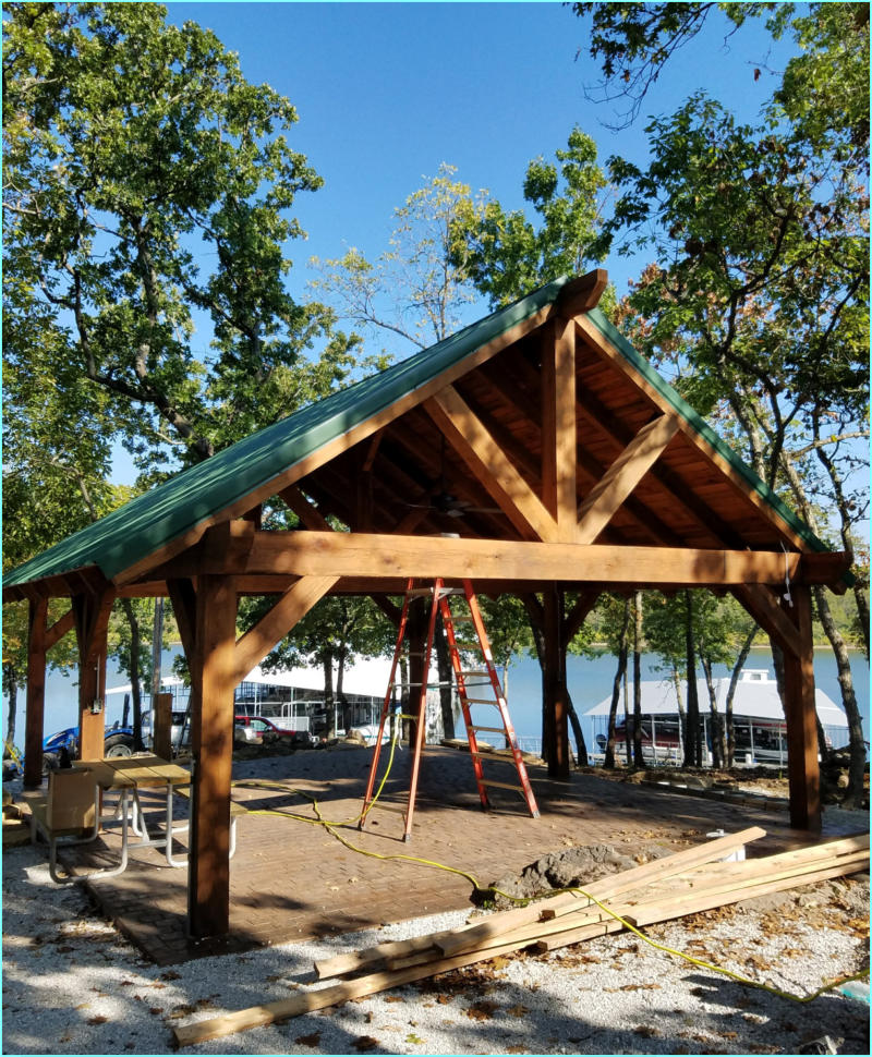 Our Pavilion kit is 20’ x 25’ timber frame structure. Standing 10’ high at the top of the